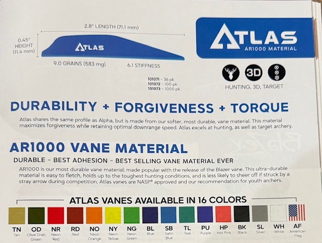 - Material: Bohning’s AR1000 vane material.